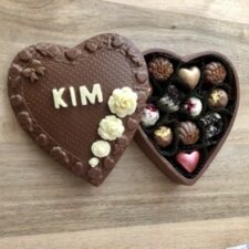 A stunning handcrafted large chocolate heart shaped box, with a beautiful floral border and 3D flowers, contains 10 to 12 x individual chocolates.