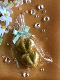 Our solid chocolate hearts wrapped in a colour foil to match your wedding colour scheme make the perfect addition for your special day.