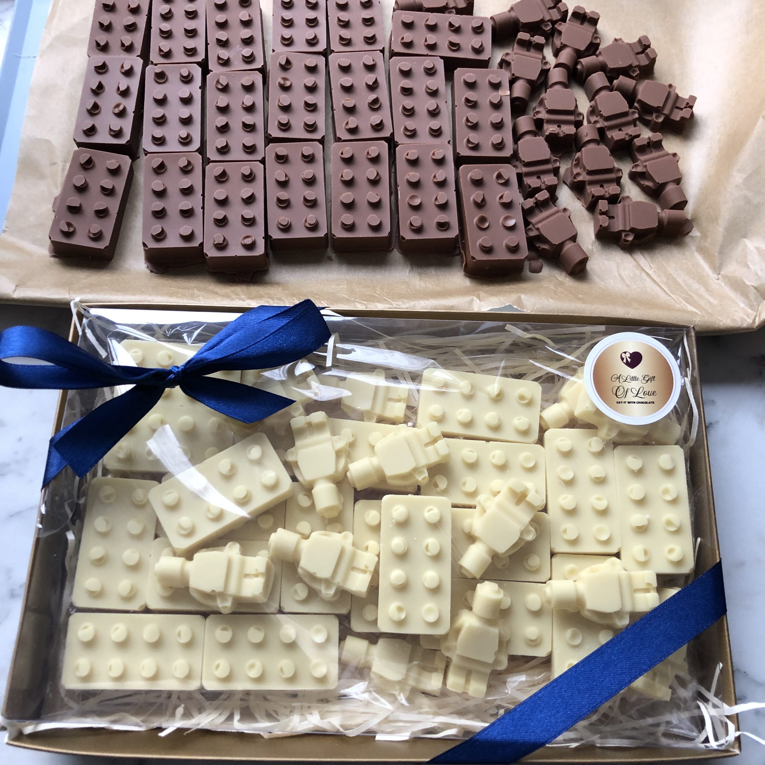 Each set comes with 20x life sized chocolate bricks and 12 x life sized chocolate building men.