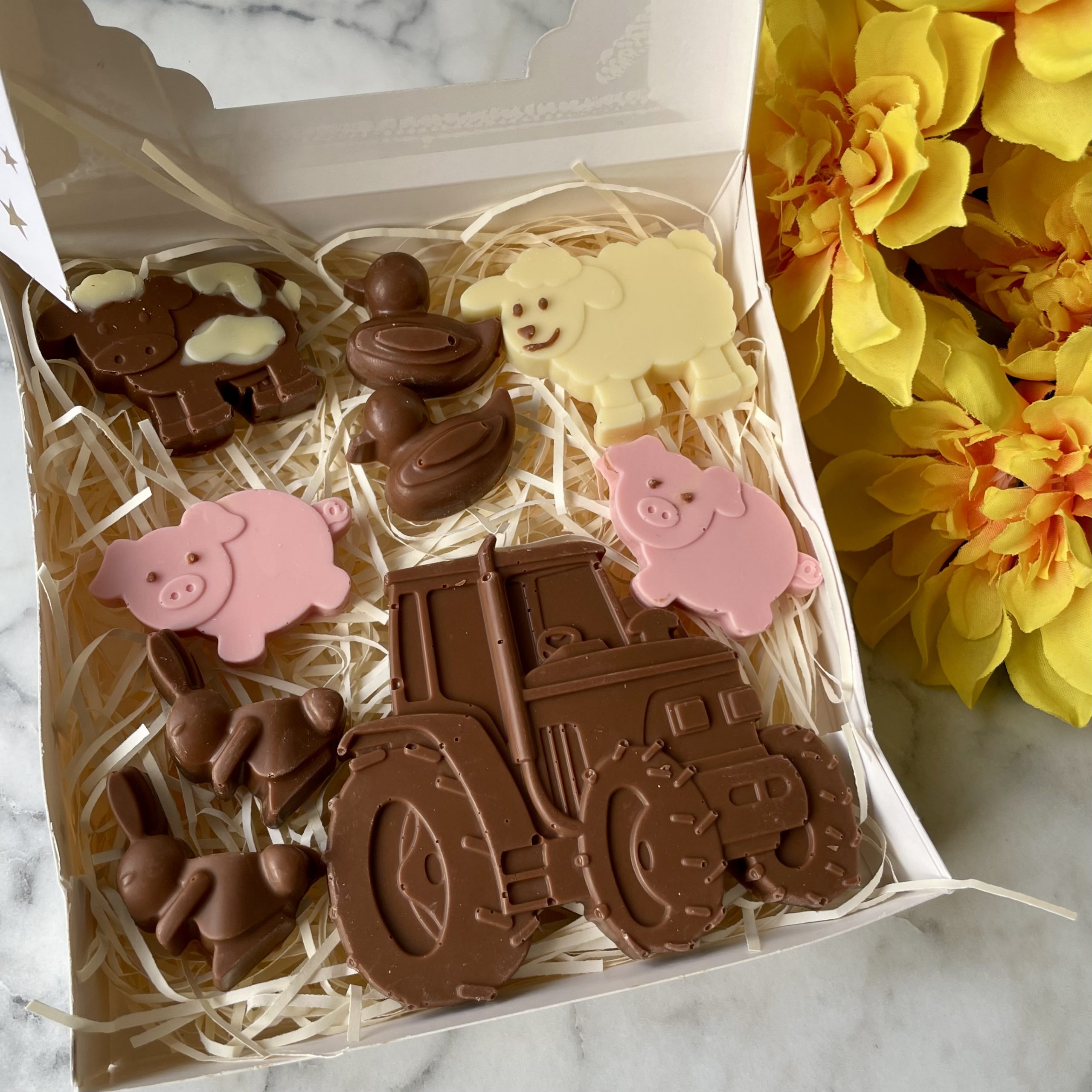 Bring a little countryside charm to Easter and spring celebrations with our Little Farmyard Chocolate Box – a beautifully presented selection of handmade novelty chocolate.