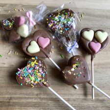 Everything you need to make and design 5 x Chunky Chocolate Heart shaped lollipops and 10 – 12 x small Chocolate Hearts. .